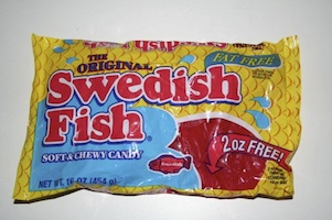 A gummy that looks like a fish and tastes like a strawberry! The bright yellow and cyan wrapper with the bold red name/logo on the front elicits a youthful and playful feel. And who doesn’t like to pretend that they’re a big fish in a small pond!